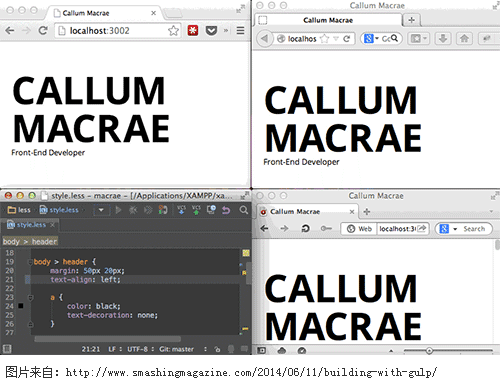 Browsersync能让浏览器实时、快速响应您的文件更改(html、js、css、sass、less等)并自动刷新页面。更重要的是 Browsersync可以同时在PC、平板、手机等设备下进项调试。您可以想象一下:“假设您的桌子上有pc、ipad、iphone、android等设备,同时打开了您需要调试的页面,当您使用browsersync后,您的任何一次代码保存,以上的设备都会同时显示您的改动”。
