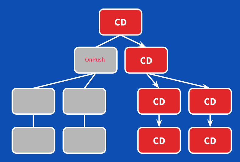 Angular变更检测是一个单向数据流,总是从根部开始到每个组件。如下面两种图。