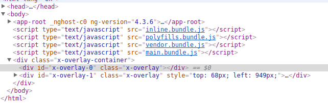ng-zorro-antd项目的覆盖,弹出之类组件是用的Angular Materialoverlay组件,这是Angular团队官方写的组件库,他们是使用@Angular/cdkportal解决弹出的问题。